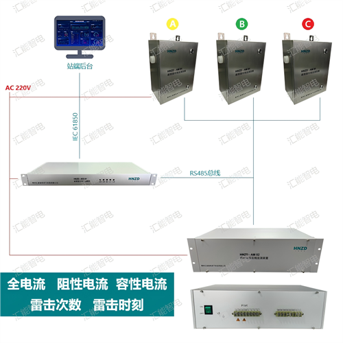 1、采集避雷器裝置的泄露電流及參考電壓,計(jì)算避雷器泄露電流基波及3、5、7、9次諧波,統(tǒng)計(jì)雷擊次數(shù)及雷擊時(shí)間等。